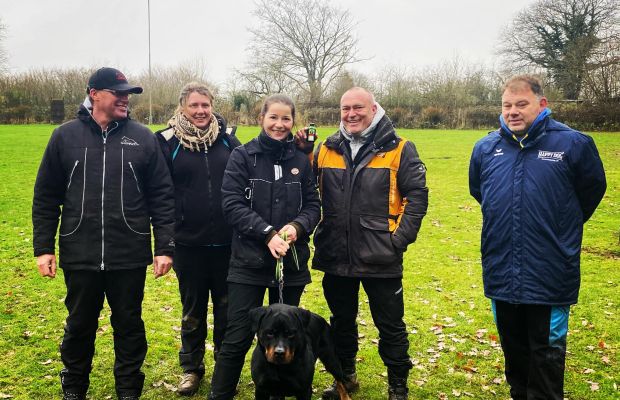 owner Ib Laursen and breeders Edgar Hellmann and Sandra Michael Reck with super result Hummer vom Cherniy Kumir son - Zeus vom Wilden Westen